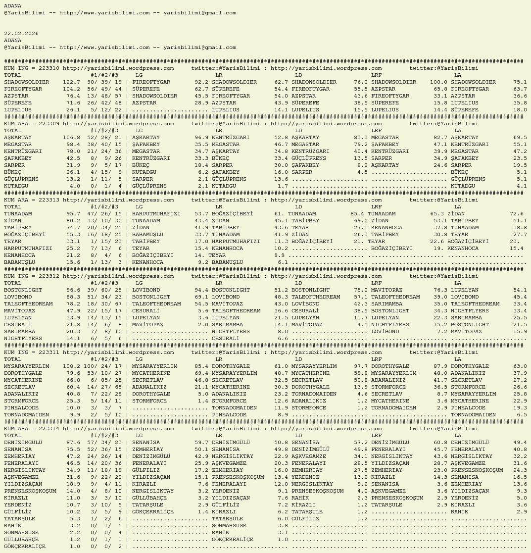 Görsel 22.02.2026.ADANA tahminleri 22 Pazar Şub 2026 Etiketleradana Yazan: yarisbilimi | Filed under adana ≈ Yorum bırakın