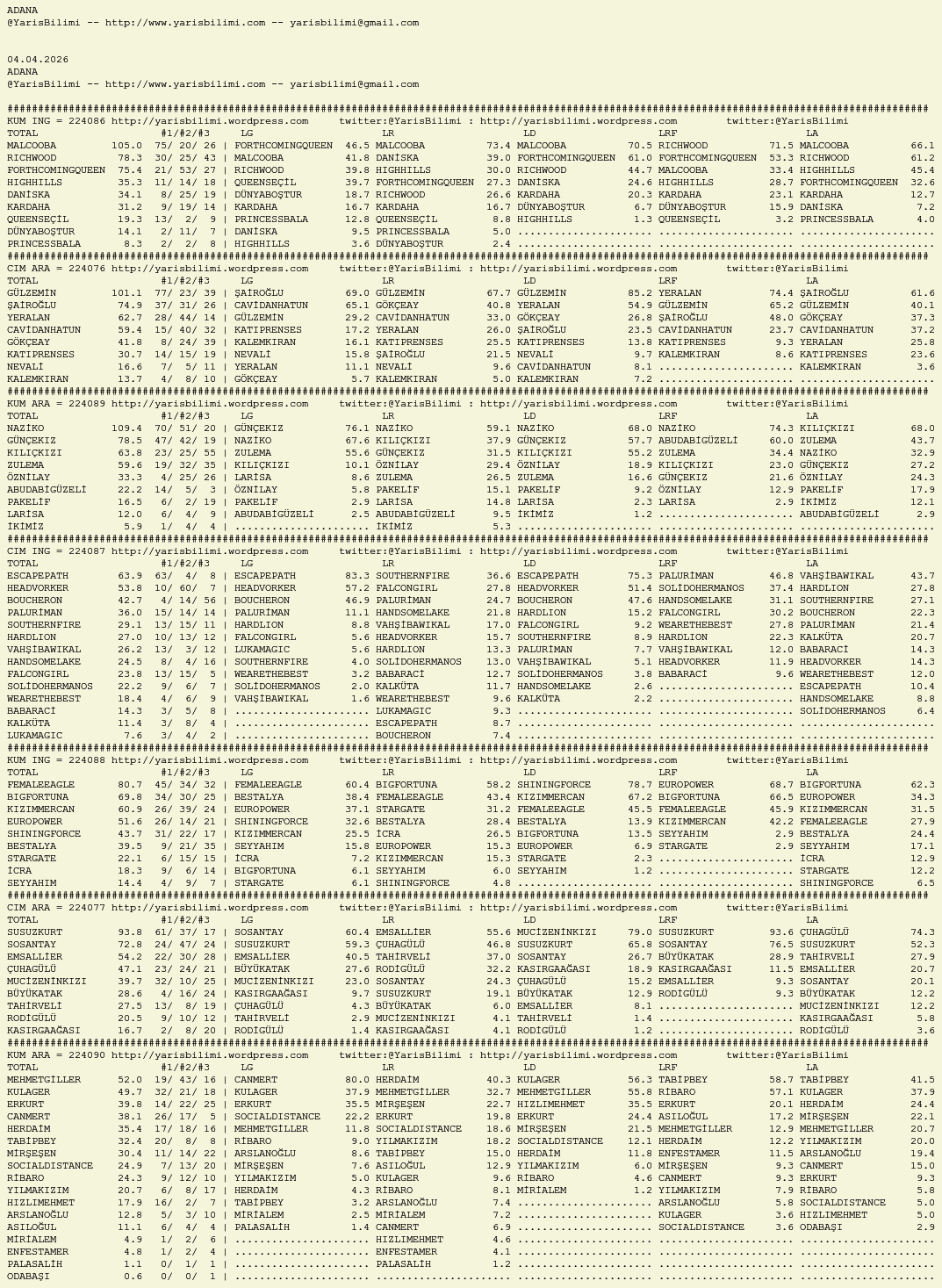 Görsel 04.04.2026.ADANA tahminleri 04 Cumartesi Nis 2026 Yazan: yarisbilimi | Filed under yorum ≈ Yorum bırakın