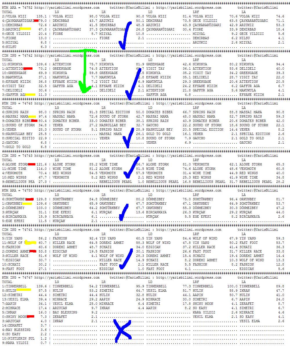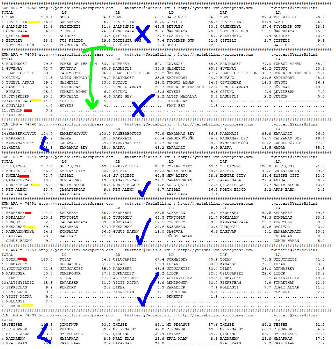 Eksik atlara dikkat ! Isimsizlerde veri eksikligimiz oldugundan siralamaya koyamadik