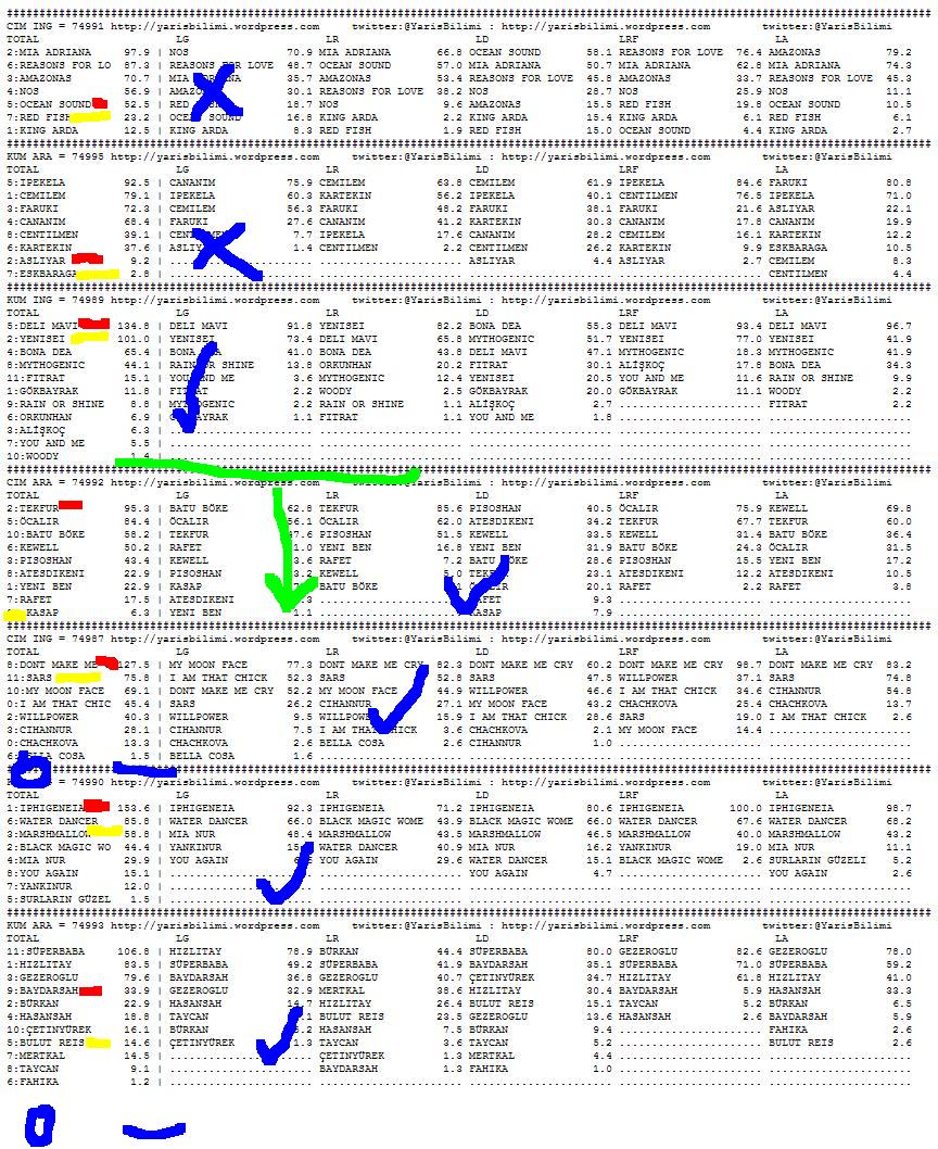 Diger yarislarda sonuclar ekte. 4 ayaktaki tahminlerimiz tutarli.