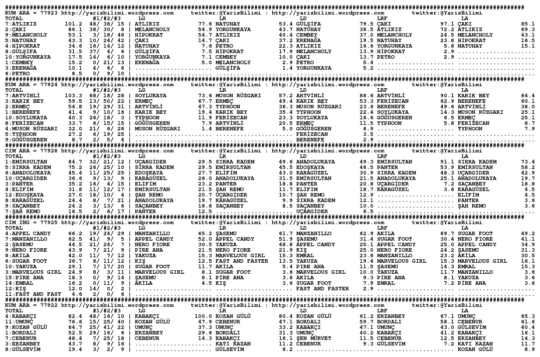 26.11.2013.ADANA tahminleri 26 Salı Kas 2013 Posted by yarisbilimi in adana, yorum ≈ Yorum bırakın Etiketleradana