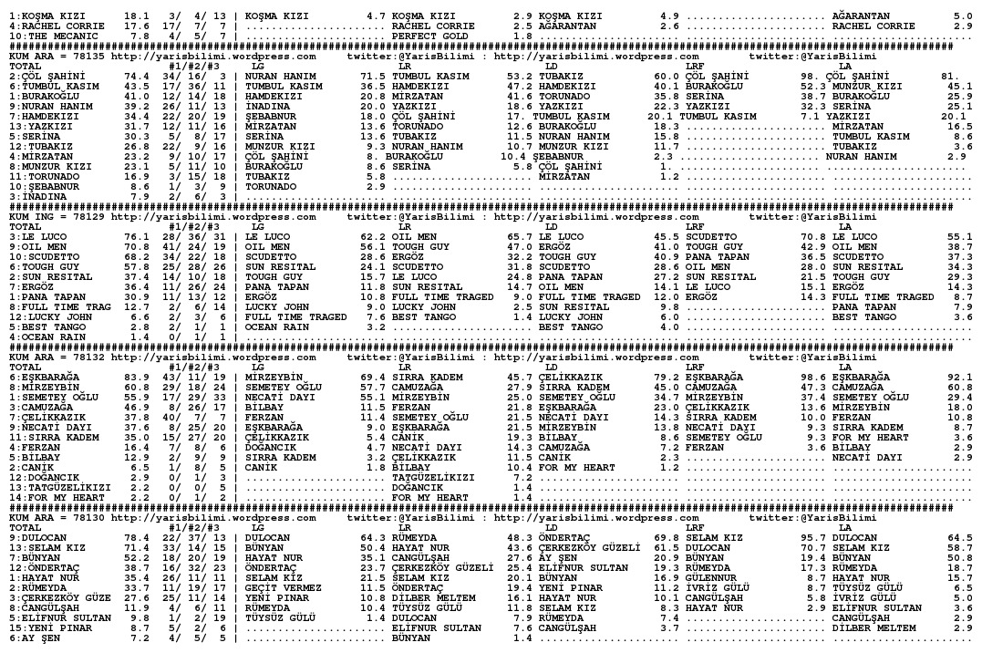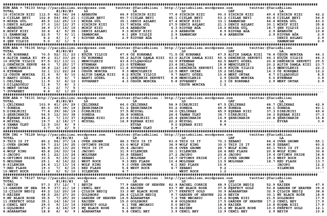 Kazanan Ganyan Mesafelere Göre