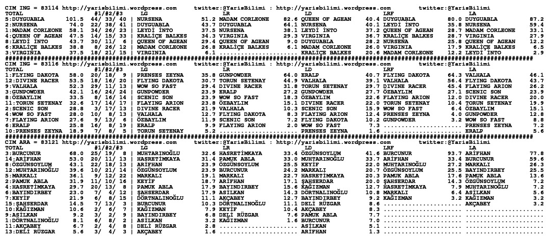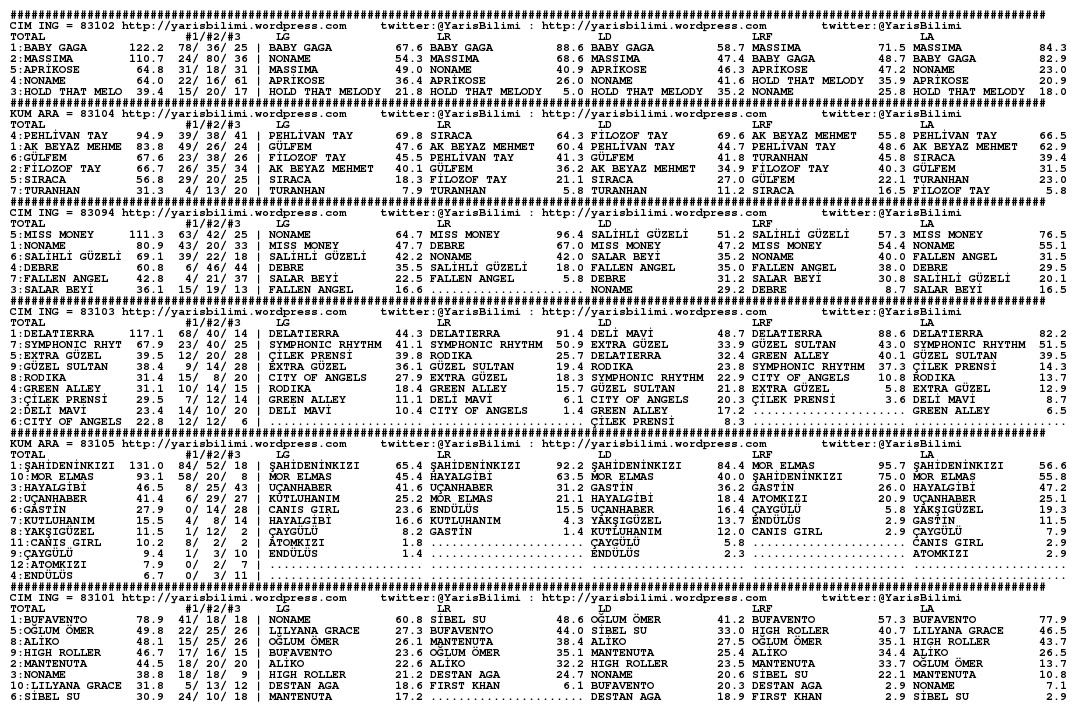 30.10.2014.IZMIR tahminleri 30 Perşembe Eki 2014 Posted by yarisbilimi in izmir, yorum ≈ Yorum bırakın Etiketlerizmir