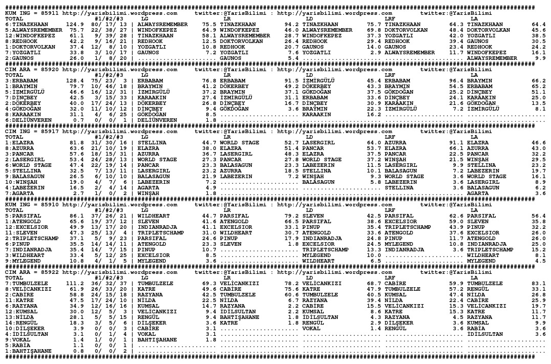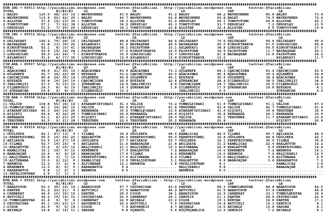 10.05.2015.ADANA tahminleri 10 Pazar May 2015 Posted by yarisbilimi in adana, yorum ≈ Yorum bırakın Etiketleradana