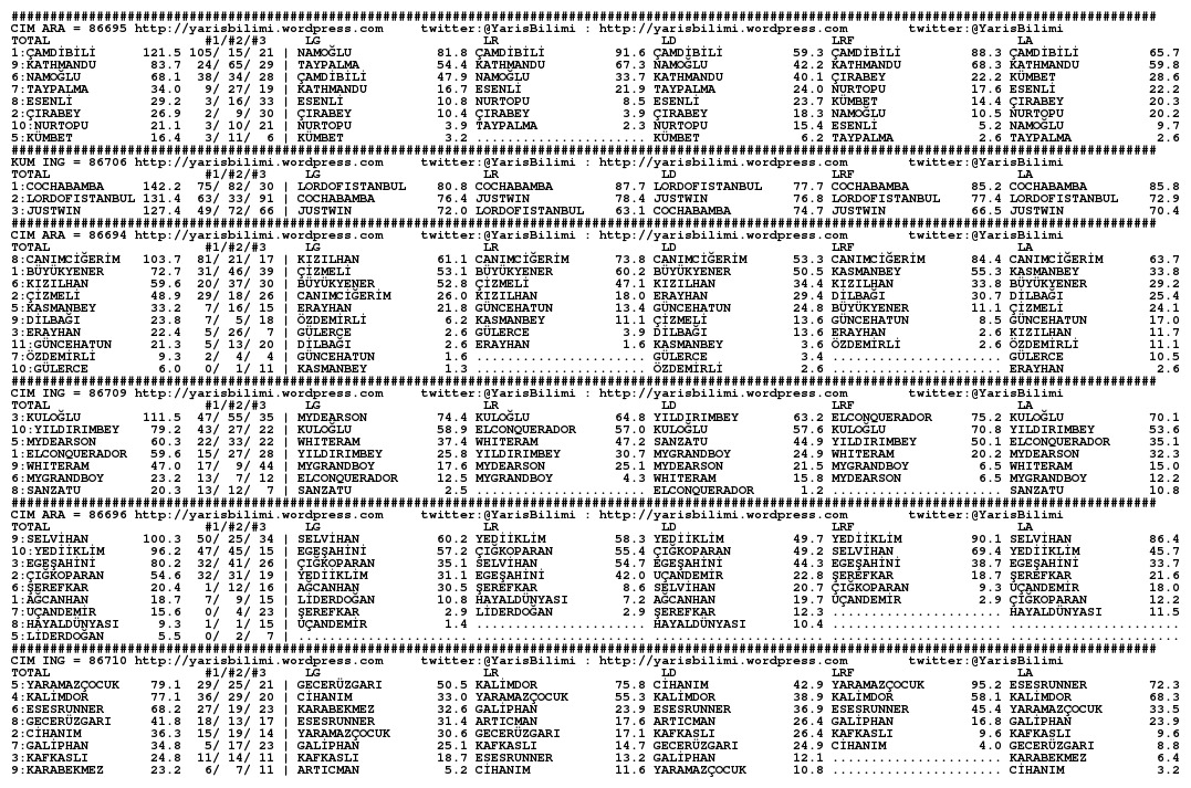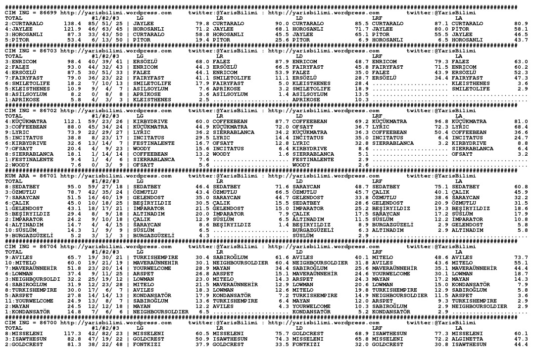 Yukarida Lucky Moment ve Captain Pitt de sistem disi kalmis. Nedeni yeni jokey veya ilk cim kosusu olmasi olsa gerek. Dikkatinize. Gecen seneye gore cok karisik gibi gececek bu yaris. Kazasiz belasiz herkese bol sans.