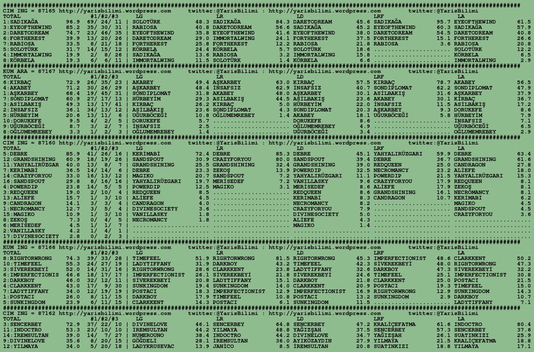 27.07.2015.URFA tahminleri 27 Pazartesi Tem 2015 Posted by yarisbilimi in urfa ≈ Yorum bırakın Etiketlerurfa, yorum