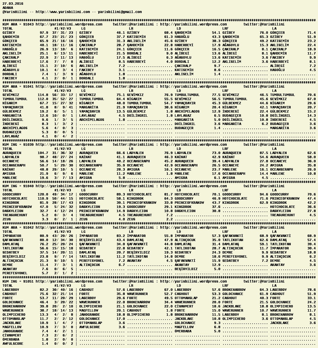 27.03.2016.ADANA tahminleri 27 Pazar Mar 2016 Posted by yarisbilimi in adana, yorum ≈ Yorum bırakın Etiketleradana