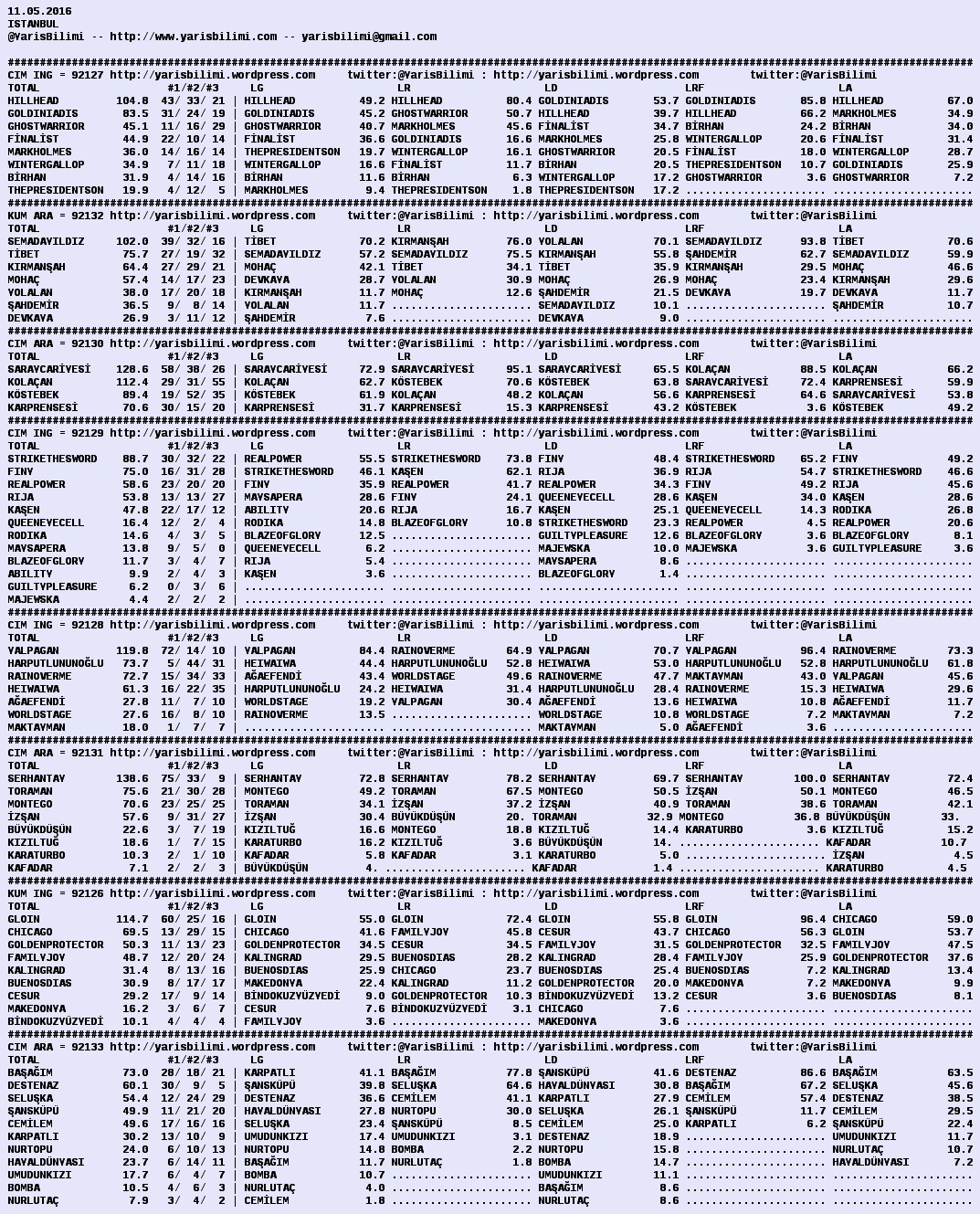Görsel 11.05.2016.ISTANBUL tahminleri 11 Çarşamba May 2016 Etiketleristanbul Yazan: yarisbilimi | Filed under istanbul, yorum ≈ Yorum bırakın
