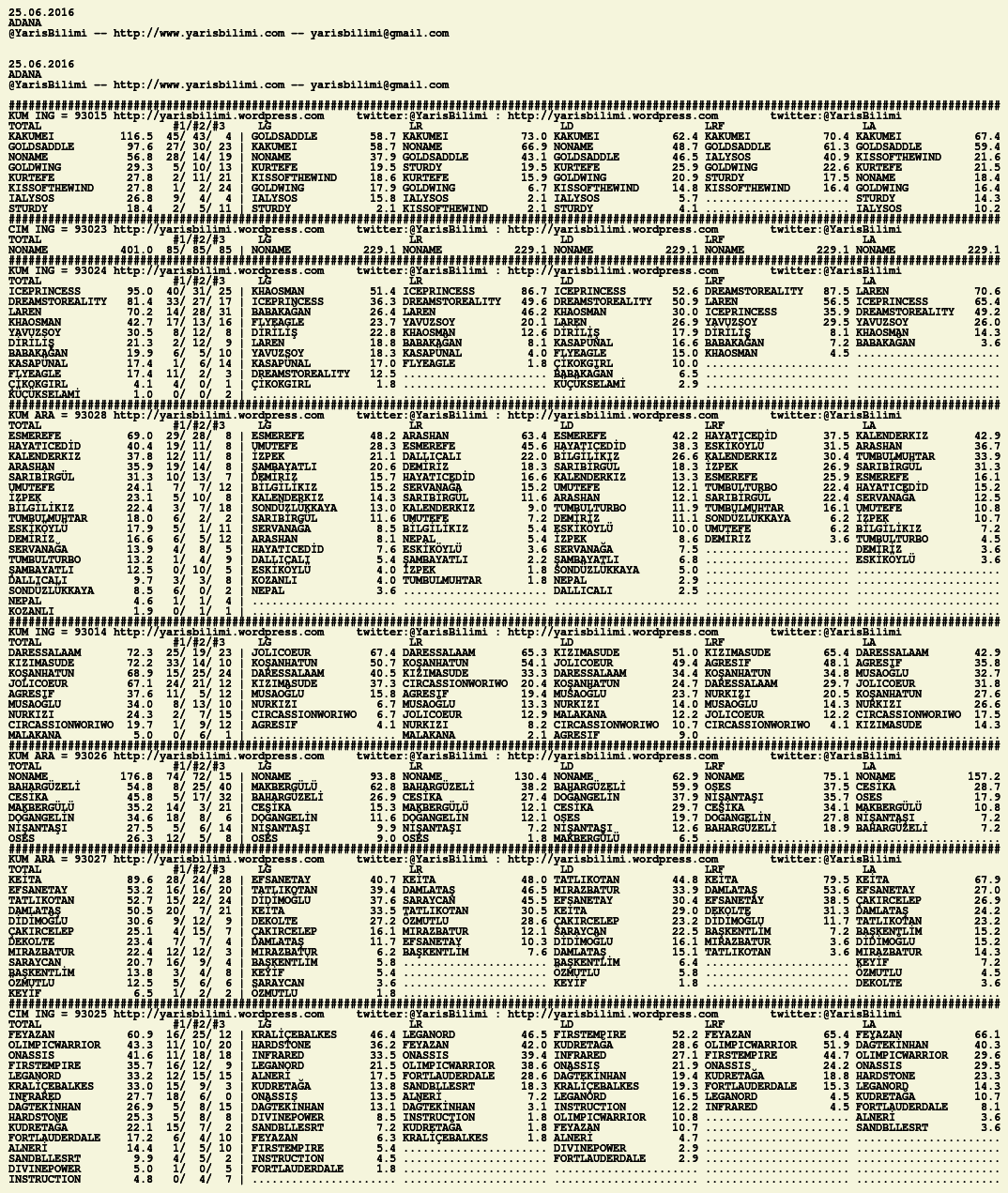 Görsel 25.06.2016.ADANA tahminleri 25 Cumartesi Haz 2016 Etiketleradana Yazan: yarisbilimi | Filed under adana, yorum ≈ Yorum bırakın