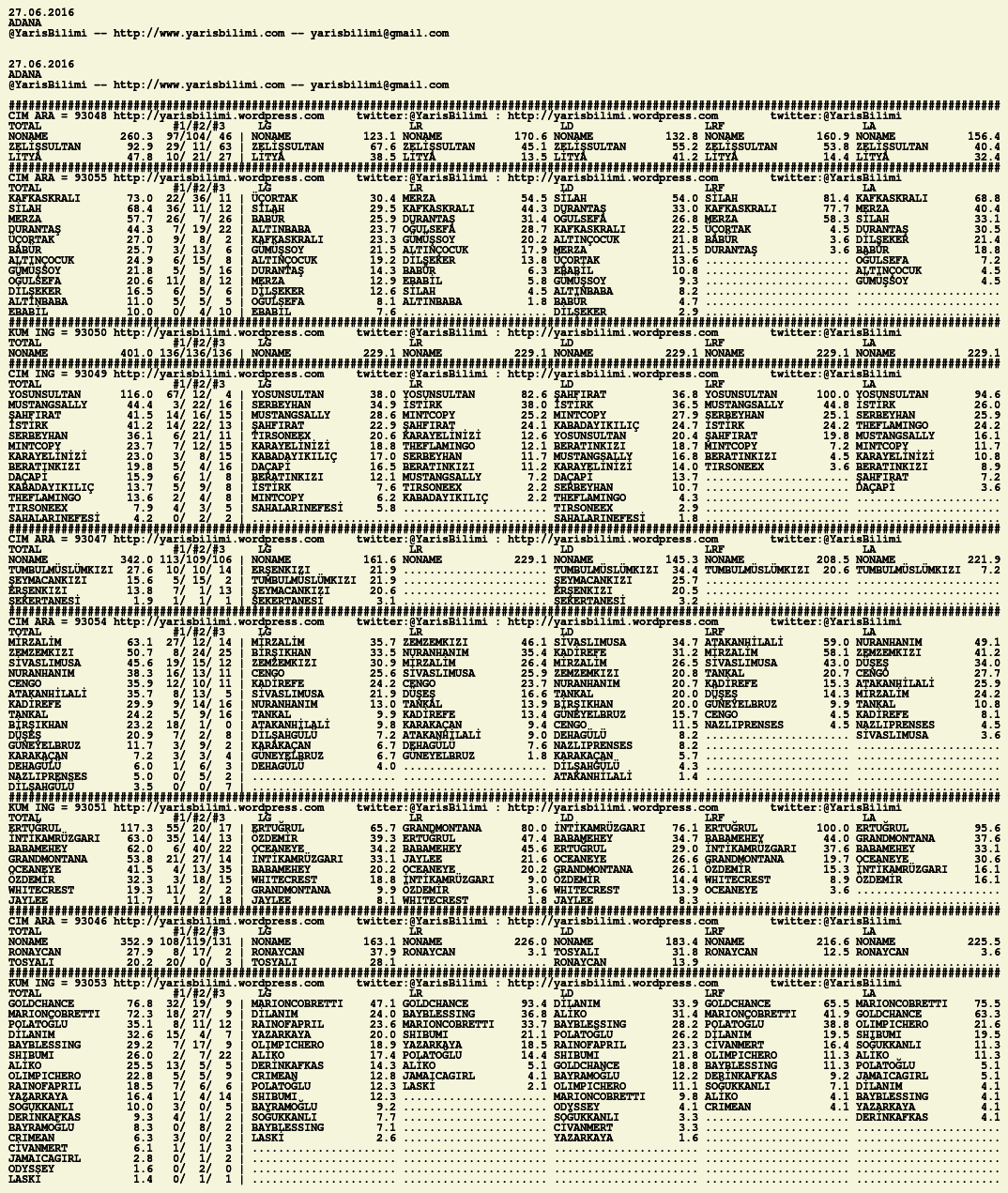 27.06.2016.ADANA tahminleri 26 Pazar Haz 2016 Posted by yarisbilimi in adana, yorum ≈ Yorum bırakın Etiketleradana
