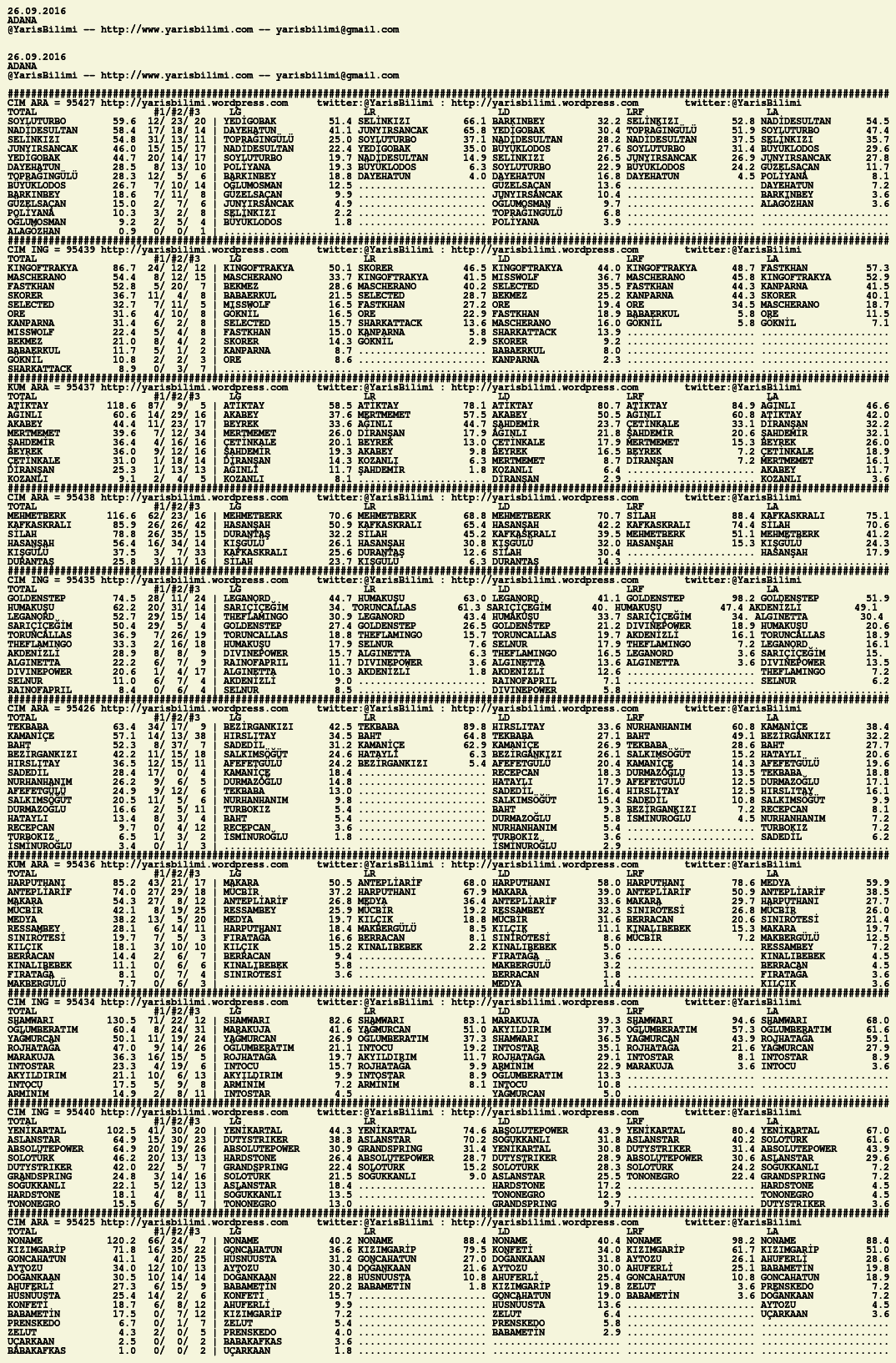 Görsel 26.09.2016.ADANA tahminleri 26 Pazartesi Eyl 2016 Etiketleradana Yazan: yarisbilimi | Filed under adana, yorum ≈ Yorum bırakın
