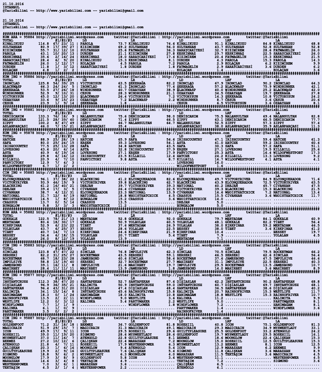 21.10.2016.ISTANBUL tahminleri 20 Perşembe Eki 2016 Posted by yarisbilimi in istanbul, yorum ≈ Yorum bırakın Etiketleristanbul