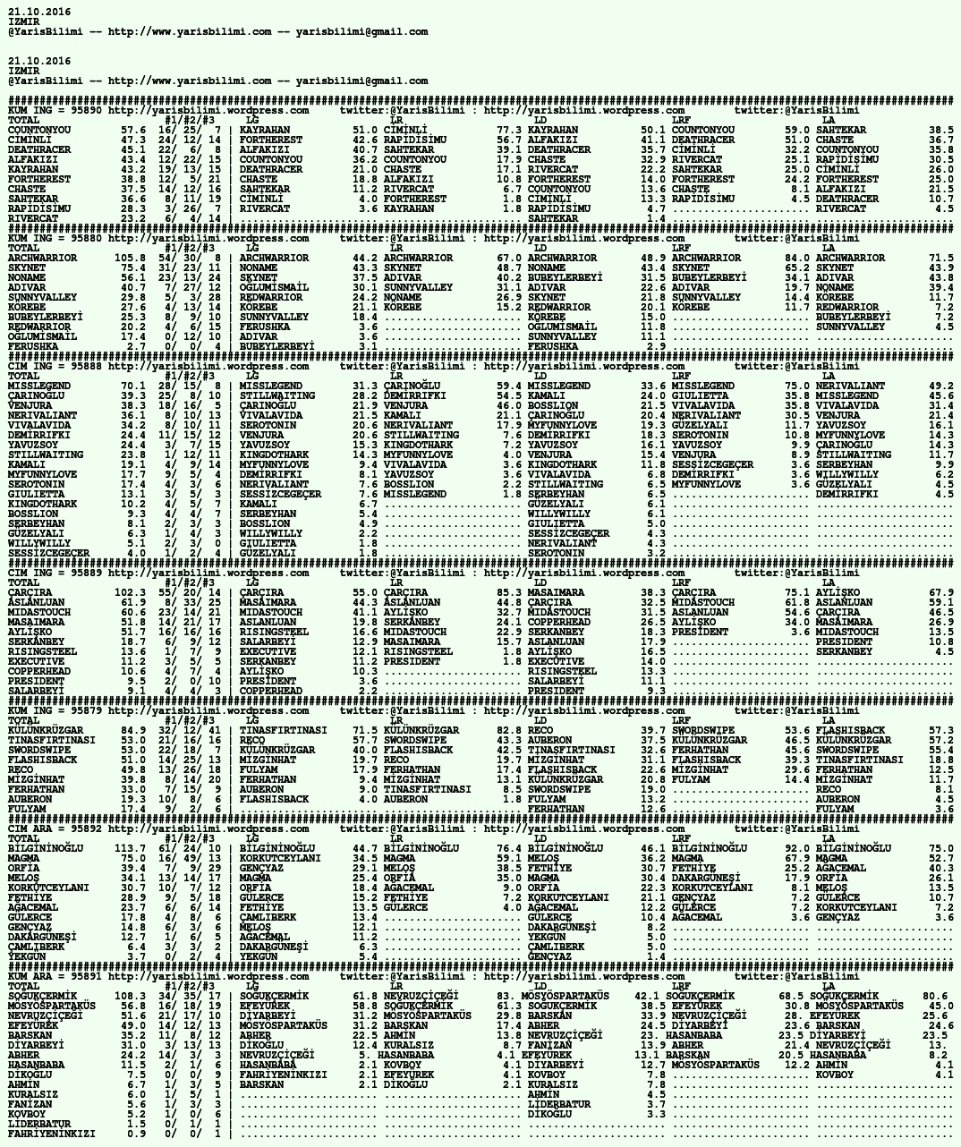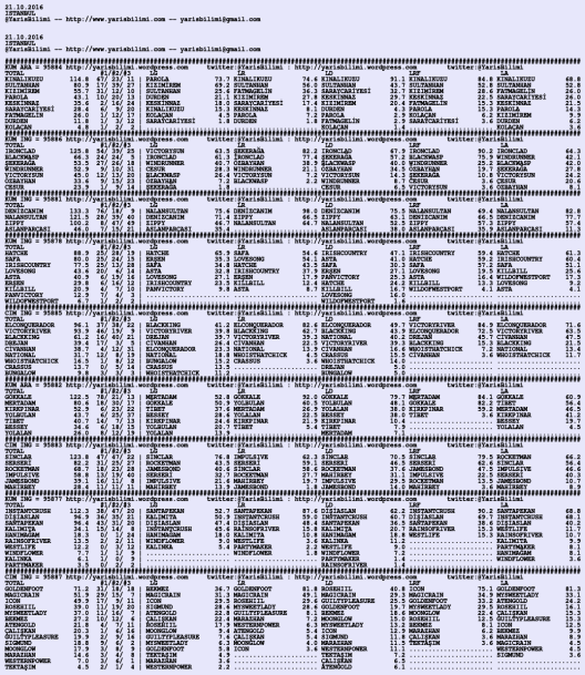 21.10.2016.IZMIR tahminleri 20 Perşembe Eki 2016 Posted by yarisbilimi in izmir, yorum ≈ Yorum bırakın Etiketlerizmir