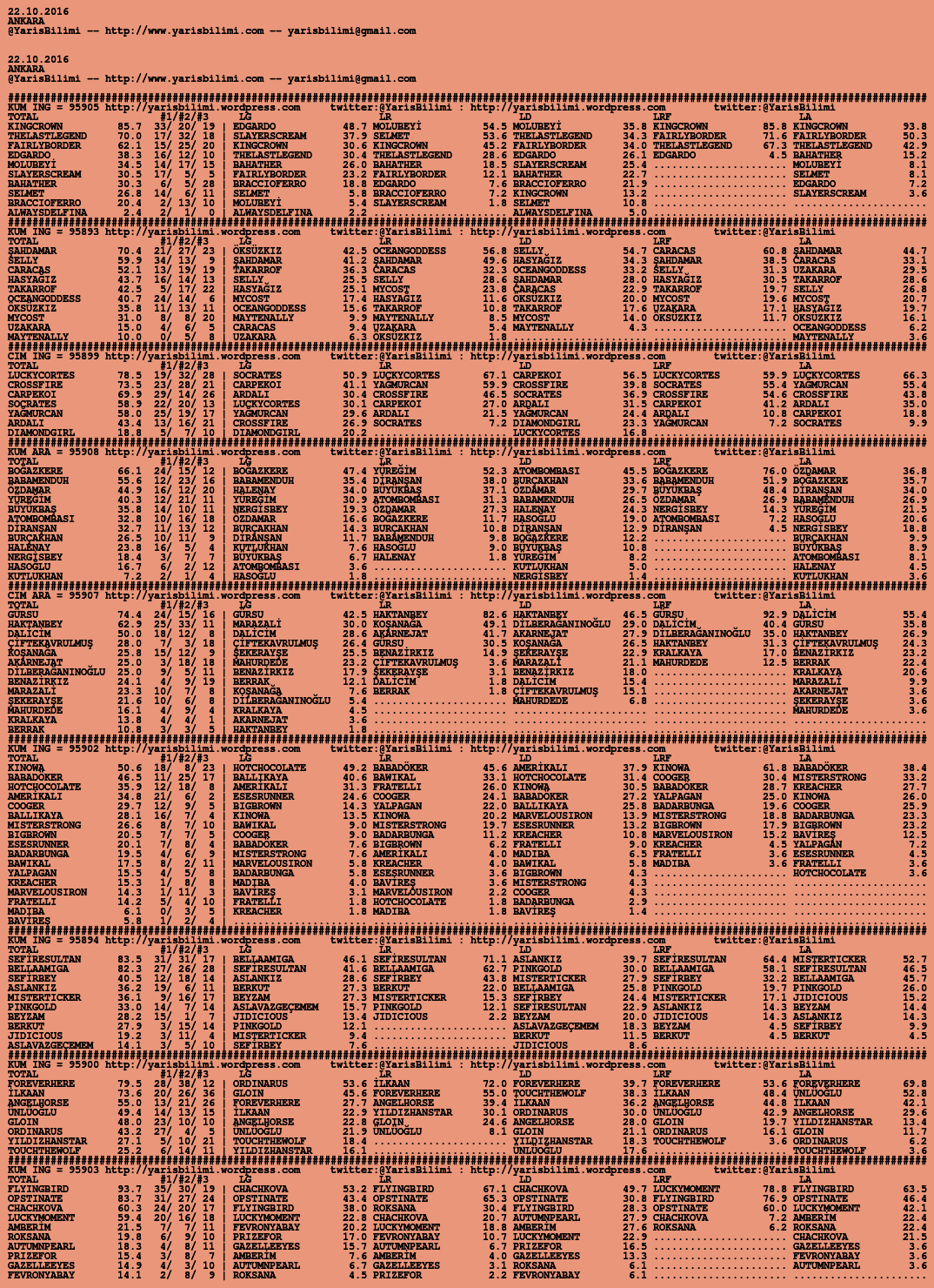 Görsel 22.10.2016.ANKARA tahminleri 22 Cumartesi Eki 2016 Etiketlerankara Yazan: yarisbilimi | Filed under ankara, yorum ≈ Yorum bırakın