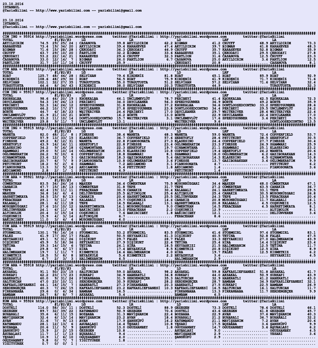 23.10.2016.ISTANBUL tahminleri 22 Cumartesi Eki 2016 Posted by yarisbilimi in istanbul, yorum ≈ Yorum bırakın Etiketleristanbul