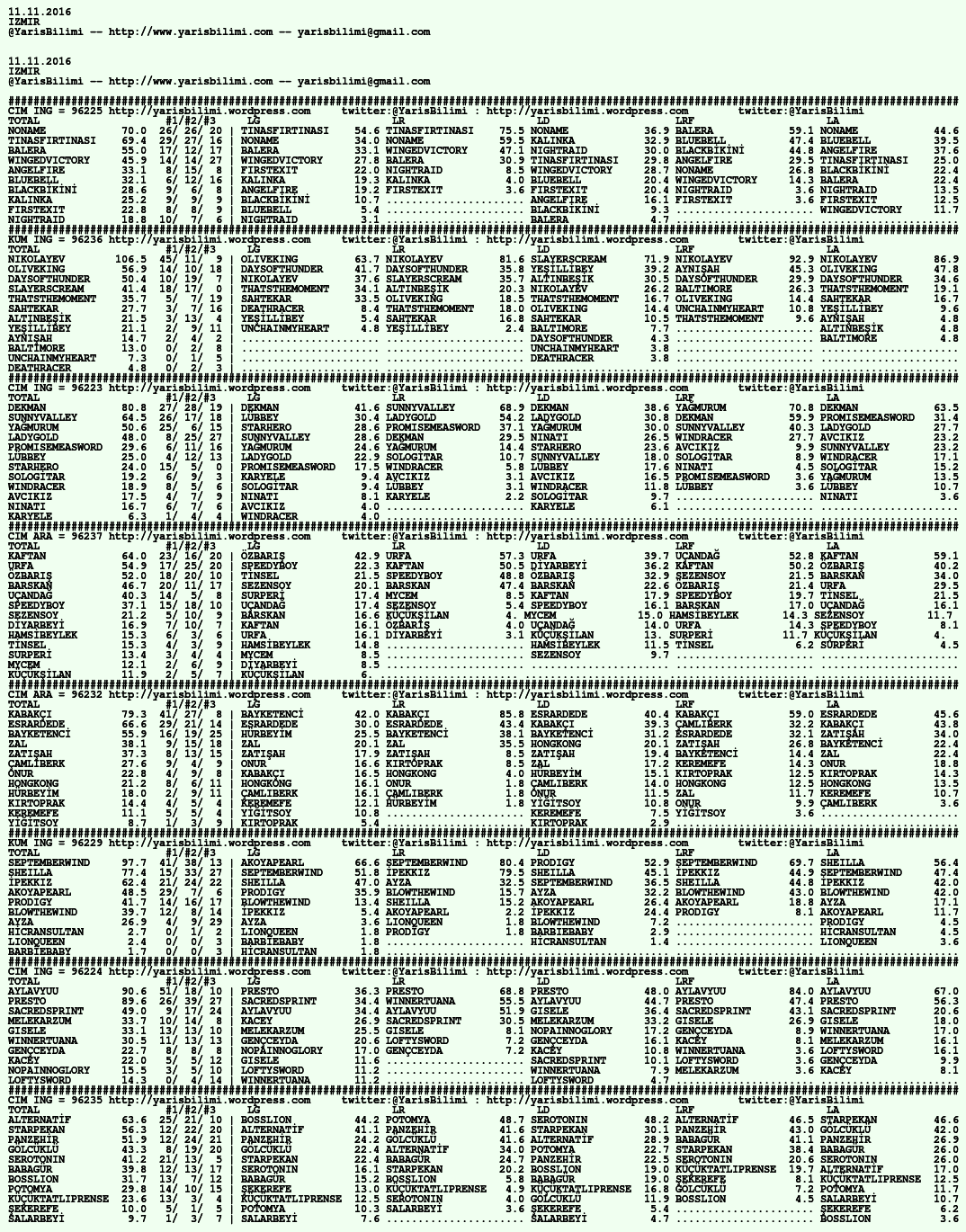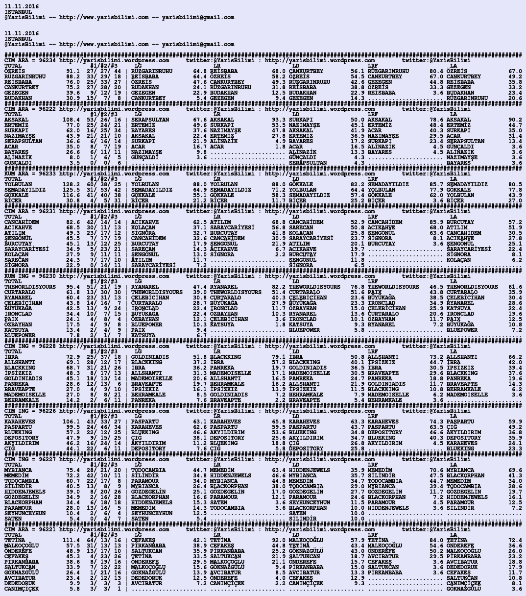 Görsel 11.11.2016.ISTANBUL tahminleri 11 Cuma Kas 2016 Etiketleristanbul Yazan: yarisbilimi | Filed under istanbul, yorum ≈ 1 Yorum