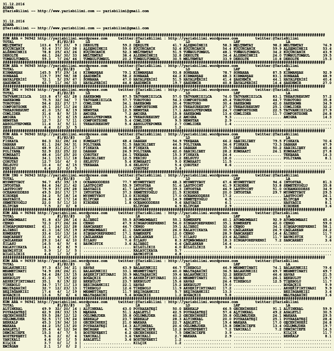 Görsel 31.12.2016.ADANA tahminleri 31 Cumartesi Ara 2016 Etiketleradana Yazan: yarisbilimi | Filed under adana, yorum ≈ Yorum bırakın