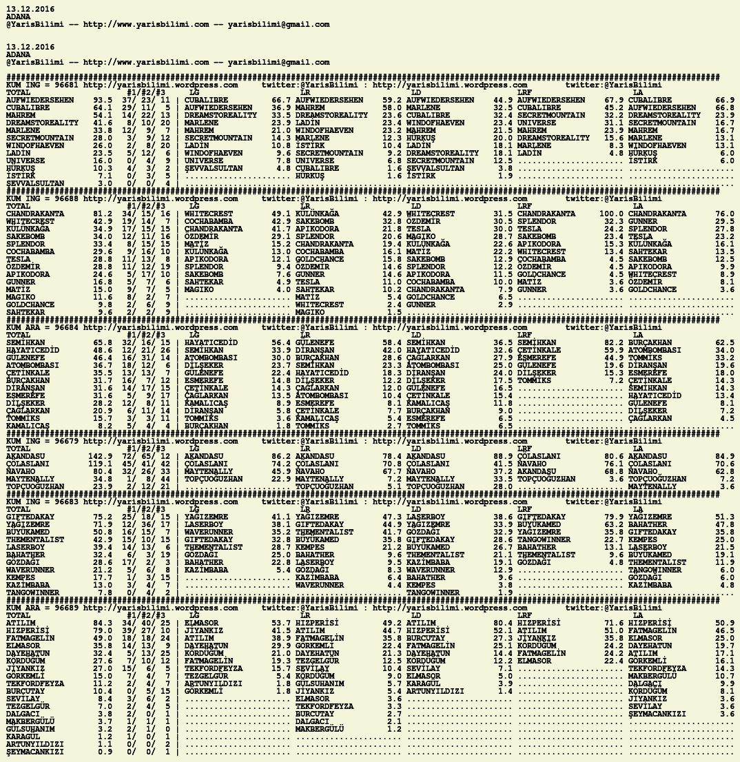 Görsel 13.12.2016.ADANA tahminleri 13 Salı Ara 2016 Etiketleradana Yazan: yarisbilimi | Filed under adana, yorum ≈ Yorum bırakın