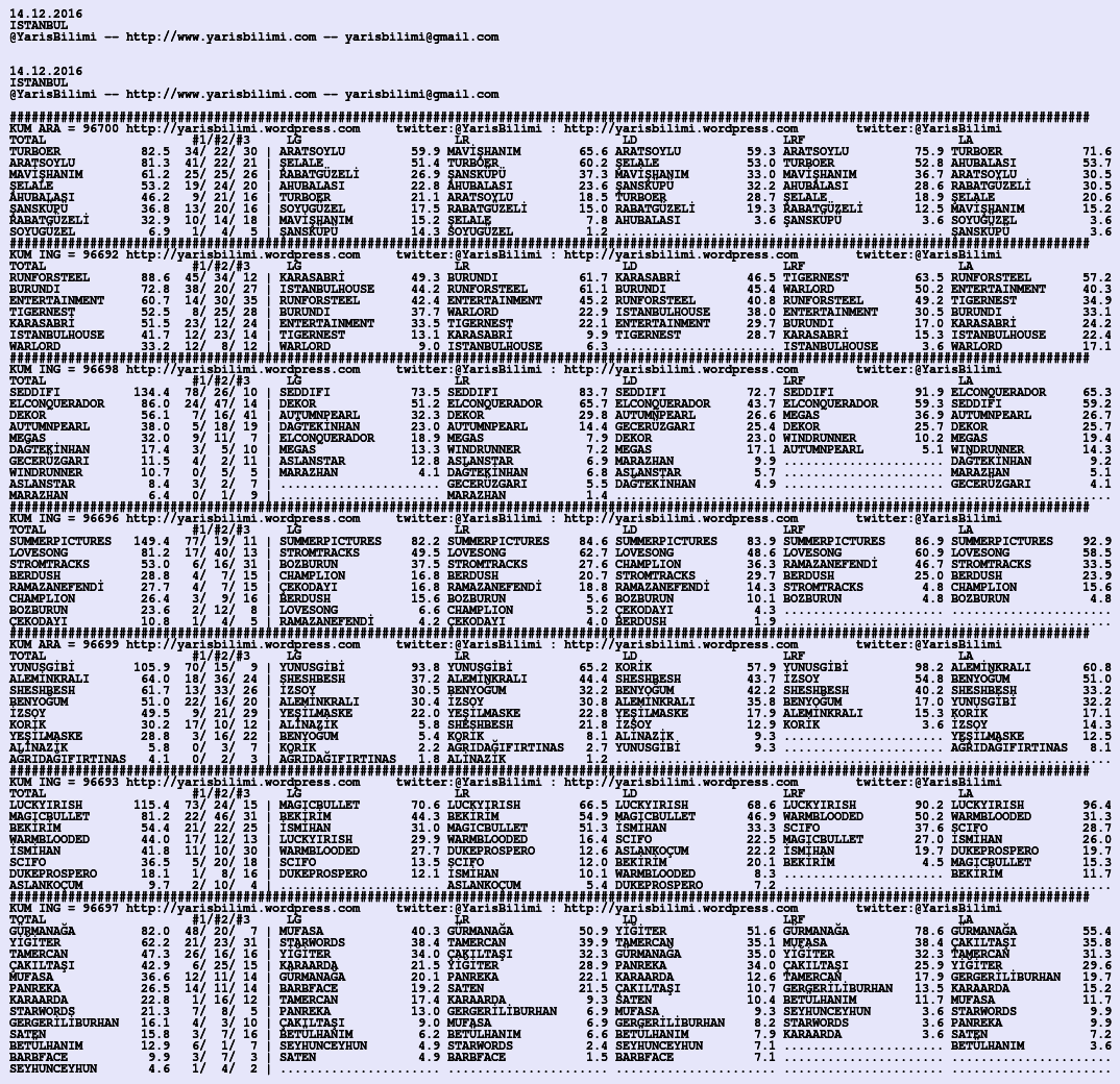Görsel 14.12.2016.ISTANBUL tahminleri 14 Çarşamba Ara 2016 Etiketleristanbul Yazan: yarisbilimi | Filed under istanbul, yorum ≈ Yorum bırakın