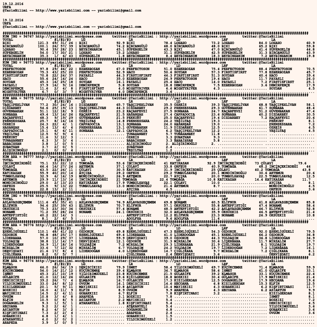 19.12.2016.URFA tahminleri 19 Pazartesi Ara 2016 Posted by yarisbilimi in urfa, yorum ≈ Yorum bırakın Etiketlerurfa