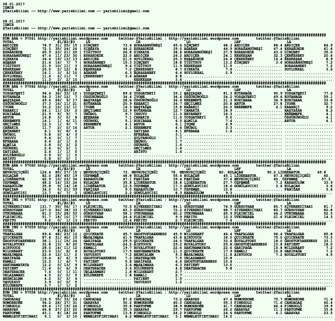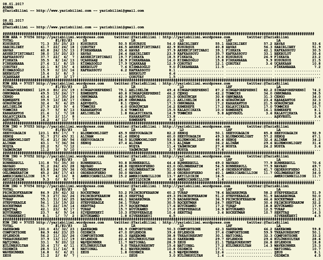 Görsel 08.01.2017.ADANA tahminleri 08 Pazar Oca 2017 Etiketleradana Yazan: yarisbilimi | Filed under adana, yorum ≈ Yorum bırakın