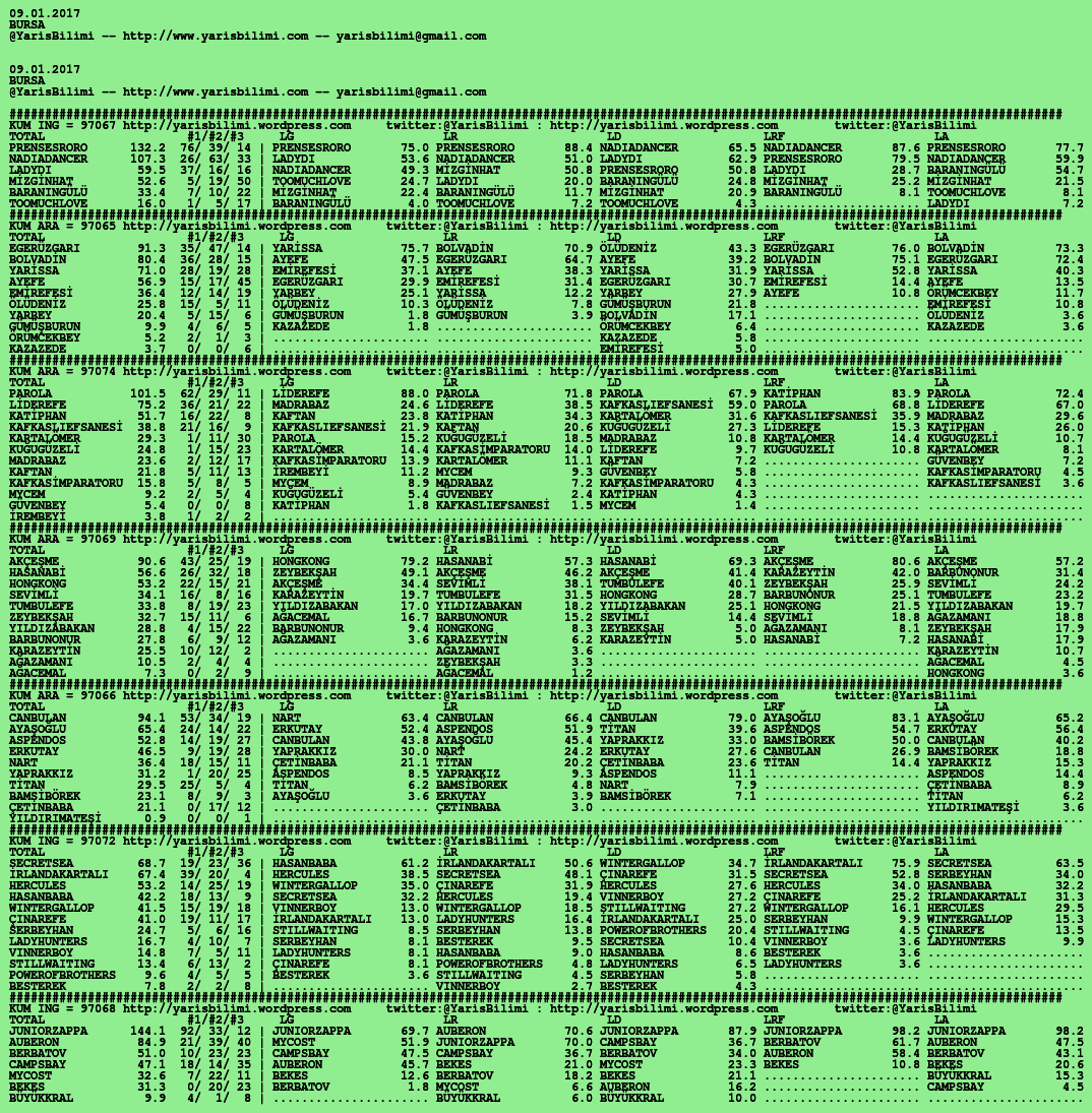 09.01.2017.BURSA tahminleri 08 Pazar Oca 2017 Posted by yarisbilimi in bursa, yorum ≈ Yorum bırakın Etiketlerbursa
