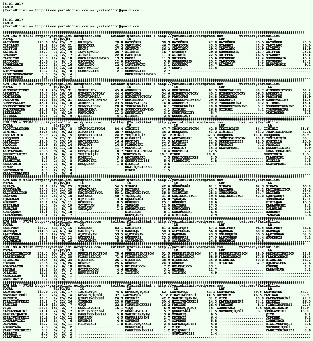 15.01.2017.IZMIR tahminleri 15 Pazar Oca 2017 Posted by yarisbilimi in izmir, yorum ≈ Yorum bırakın Etiketlerizmir