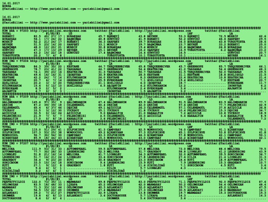 Görsel 16.01.2017.URFA tahminleri 16 Pazartesi Oca 2017 Etiketlerurfa Yazan: yarisbilimi | Filed under urfa, yorum ≈ Yorum bırakın