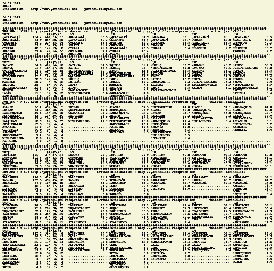 Görsel 04.02.2017.ADANA tahminleri 04 Cumartesi Şub 2017 Etiketleradana Yazan: yarisbilimi | Filed under adana, yorum ≈ 1 Yorum