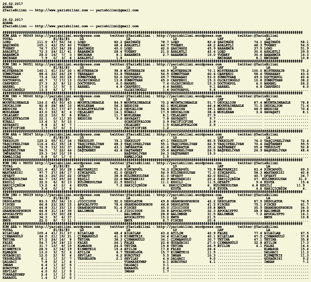26.02.2017.ADANA tahminleri 26 Pazar Şub 2017 Posted by yarisbilimi in adana, yorum ≈ Yorum bırakın Etiketleradana