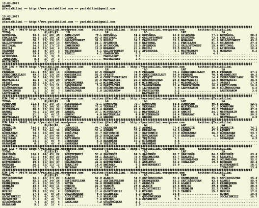 Görsel 19.03.2017.ADANA tahminleri 19 Pazar Mar 2017 Etiketleradana Yazan: yarisbilimi | Filed under adana, yorum ≈ Yorum bırakın