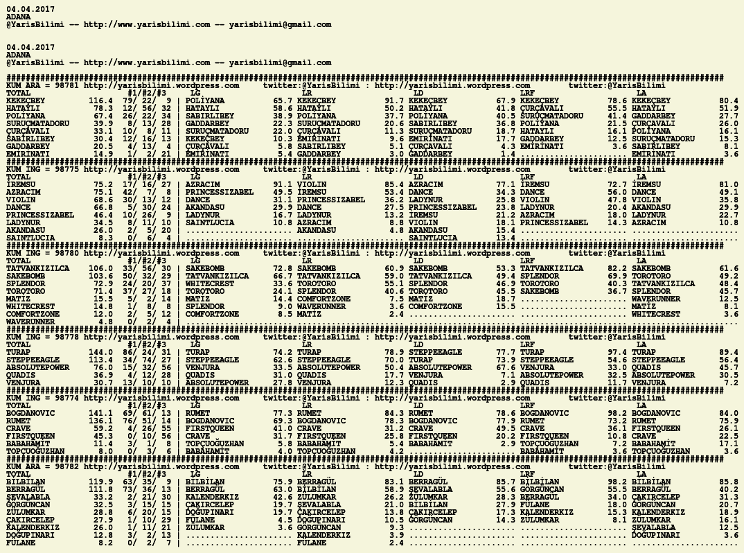 04.04.2017.ADANA tahminleri 03 Pazartesi Nis 2017 Posted by yarisbilimi in adana, yorum ≈ Yorum bırakın Etiketleradana
