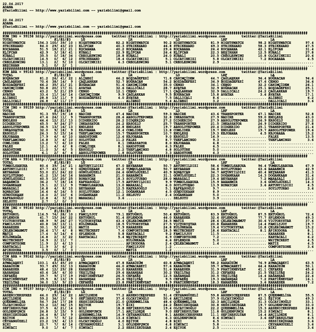 Görsel 22.04.2017.ADANA tahminleri 22 Cumartesi Nis 2017 Etiketleradana Yazan: yarisbilimi | Filed under adana, yorum ≈ 1 Yorum