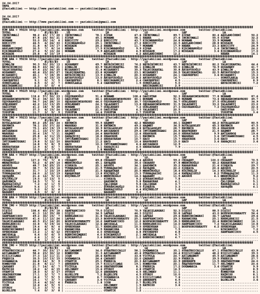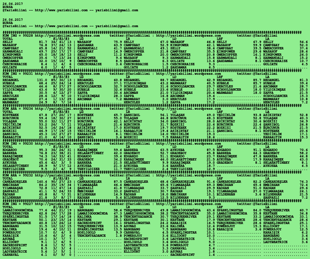 Görsel 24.04.2017.URFA tahminleri 24 Pazartesi Nis 2017 Etiketlerurfa Yazan: yarisbilimi | Filed under urfa, yorum ≈ 2 Yorum