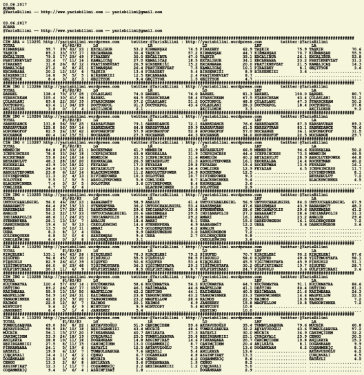 Görsel 03.06.2017.ADANA tahminleri 03 Cumartesi Haz 2017 Etiketleradana Yazan: yarisbilimi | Filed under adana, yorum ≈ Yorum bırakın
