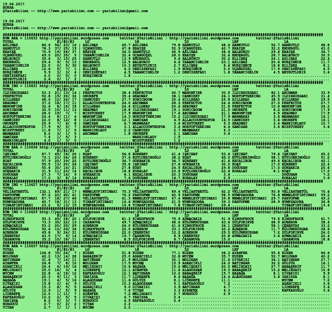 19.06.2017.URFA tahminleri 18 Pazar Haz 2017 Posted by yarisbilimi in urfa, yorum ≈ Yorum bırakın Etiketlerurfa