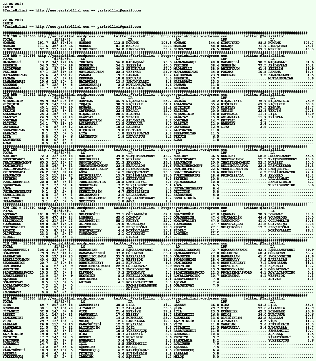 22.06.2017.IZMIR tahminleri 21 Çarşamba Haz 2017 Posted by yarisbilimi in izmir, yorum ≈ Yorum bırakın Etiketlerizmir