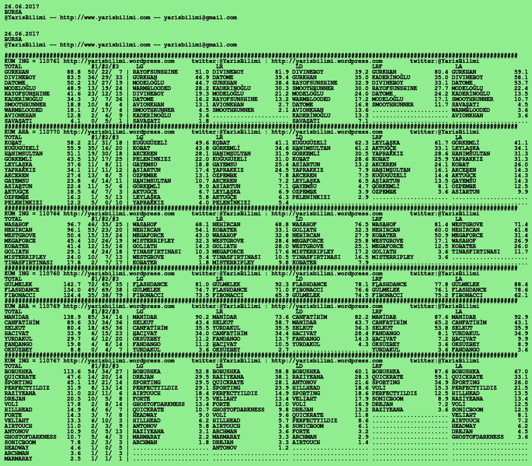 Görsel 26.06.2017.BURSA tahminleri 26 Pazartesi Haz 2017 Etiketlerbursa Yazan: yarisbilimi | Filed under bursa, yorum ≈ 3 Yorum