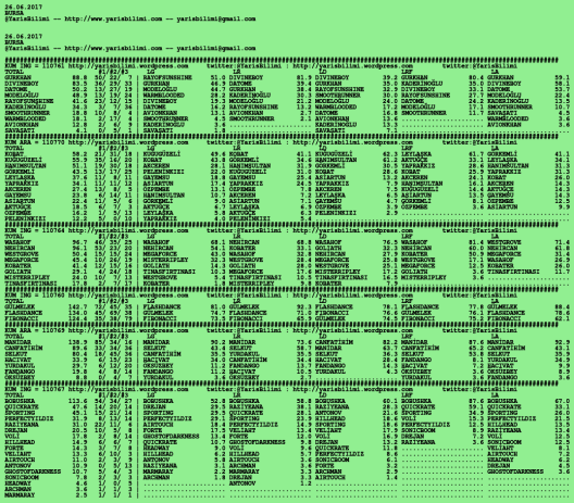 Görsel 26.06.2017.URFA tahminleri 26 Pazartesi Haz 2017 Etiketlerurfa Yazan: yarisbilimi | Filed under urfa, yorum ≈ 1 Yorum