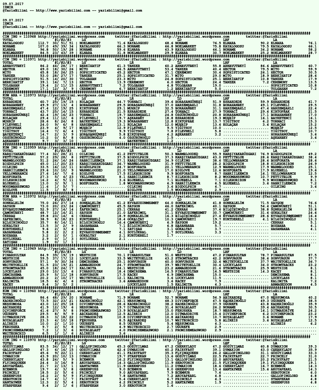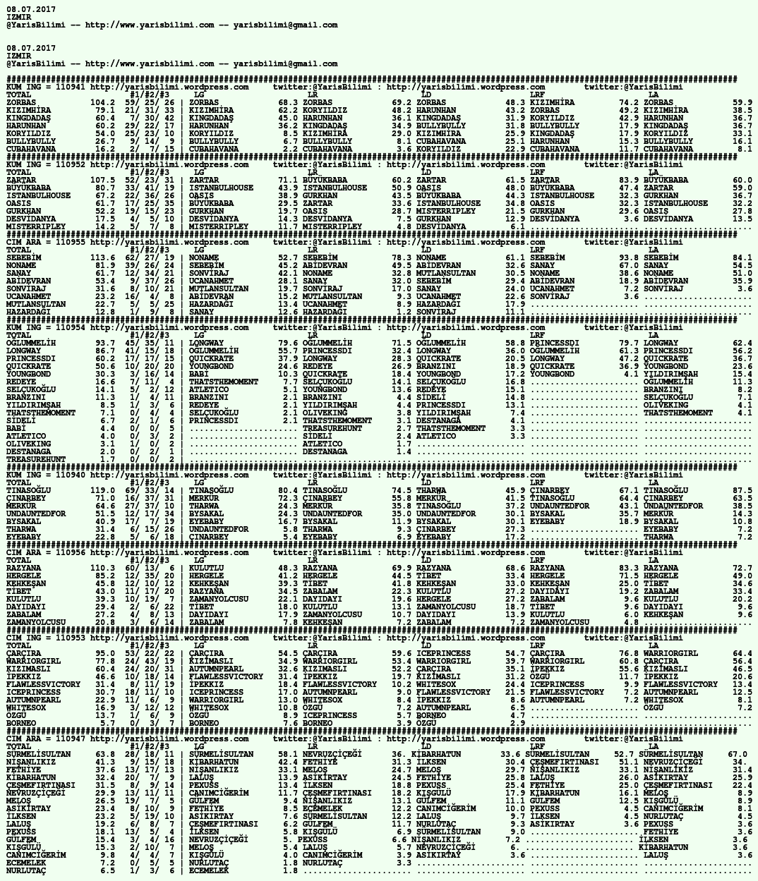 09.07.2017.IZMIR tahminleri 08 Cumartesi Tem 2017 Posted by yarisbilimi in izmir, yorum ≈ 1 Yorum Etiketlerizmir