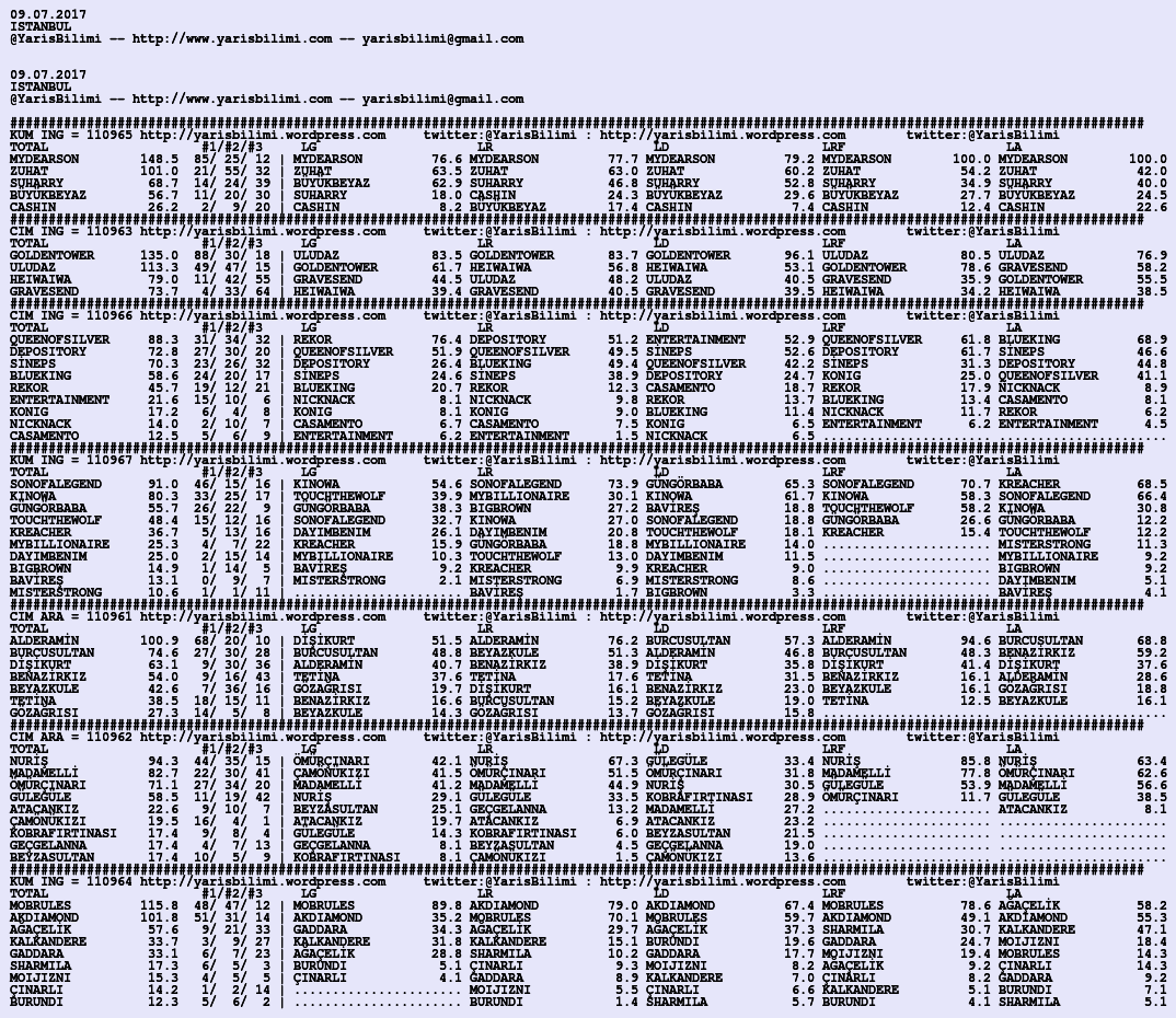 09.07.2017.ISTANBUL tahminleri 08 Cumartesi Tem 2017 Posted by yarisbilimi in istanbul, yorum ≈ Yorum bırakın Etiketleristanbul