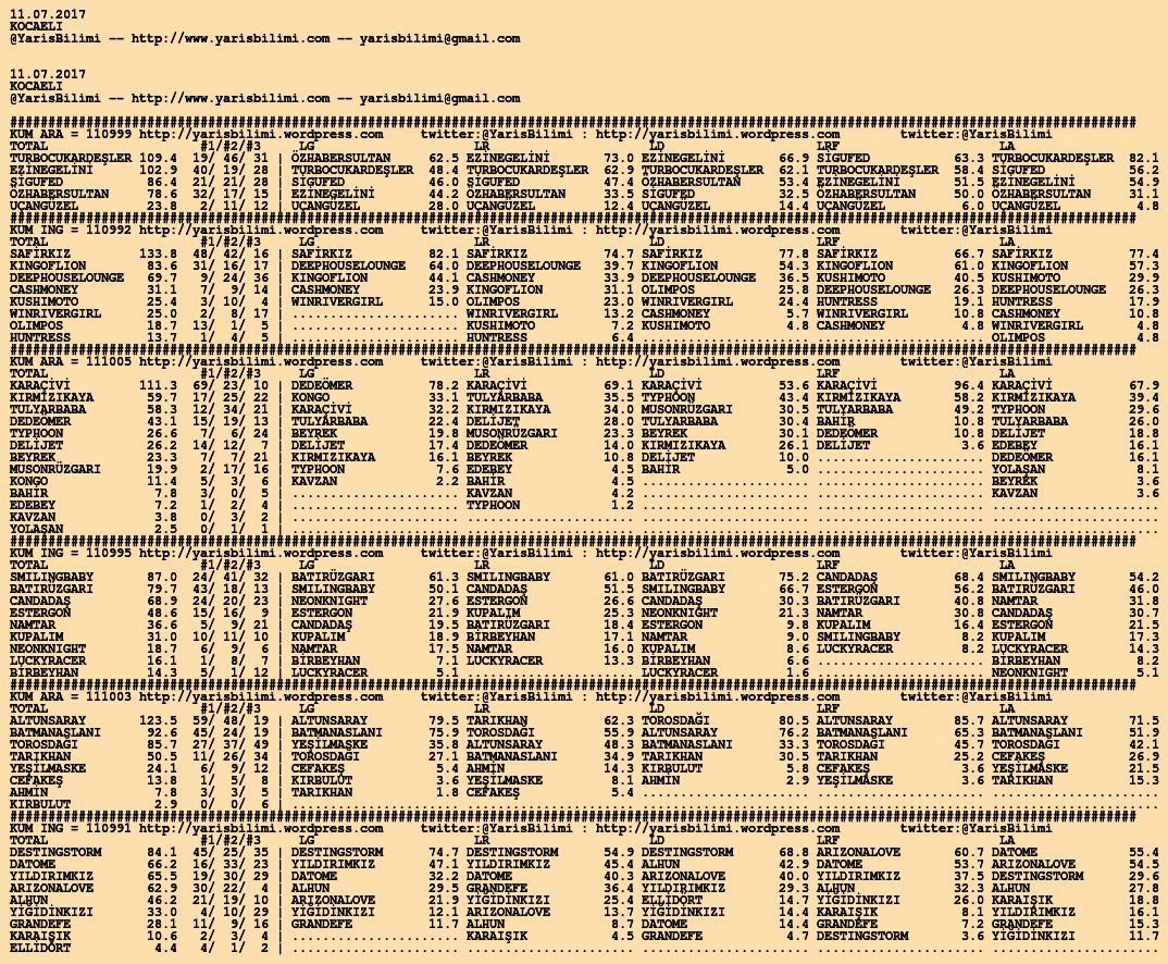 11.07.2017.KOCAELI tahminleri 10 Pazartesi Tem 2017 Posted by yarisbilimi in kocaeli, yorum ≈ Yorum bırakın Etiketlerkocaeli