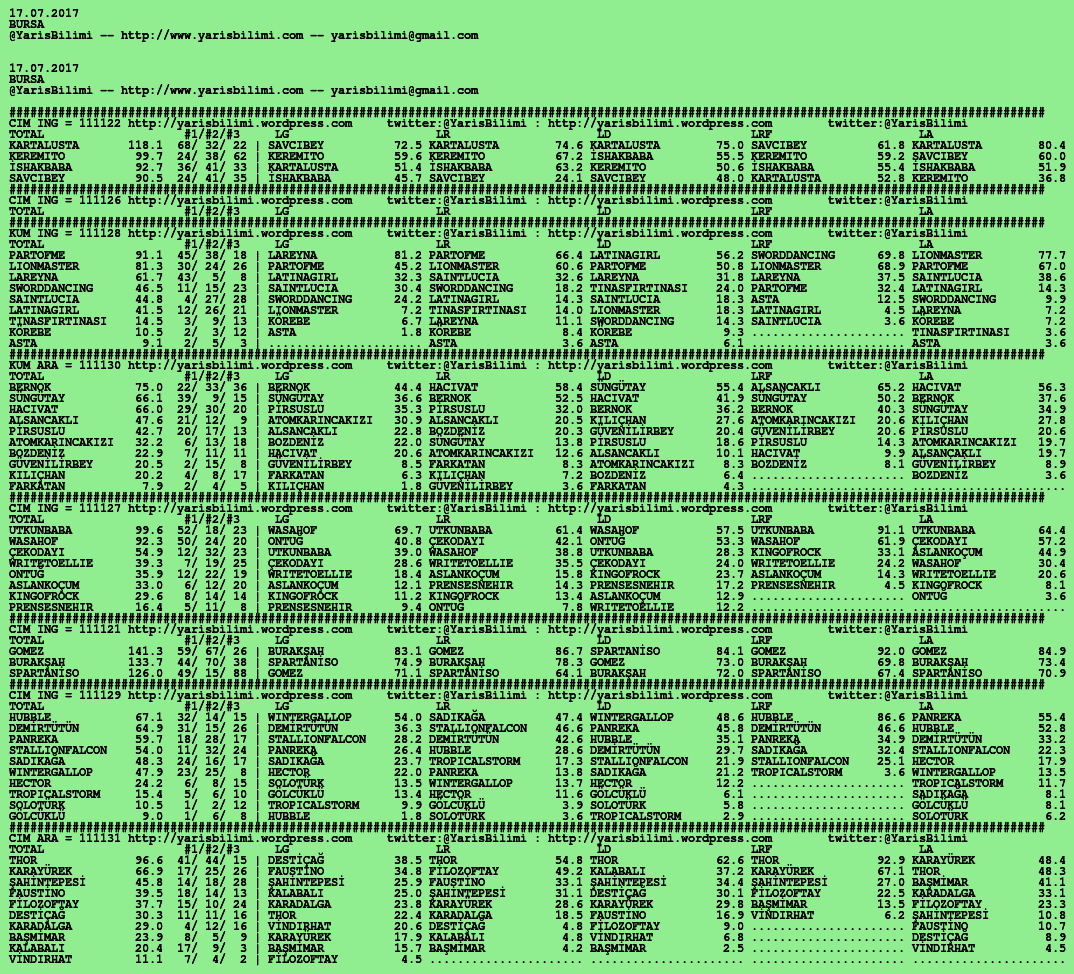 Görsel 17.07.2017.BURSA tahminleri 17 Pazartesi Tem 2017 Etiketlerbursa Yazan: yarisbilimi | Filed under bursa, yorum ≈ Yorum bırakın