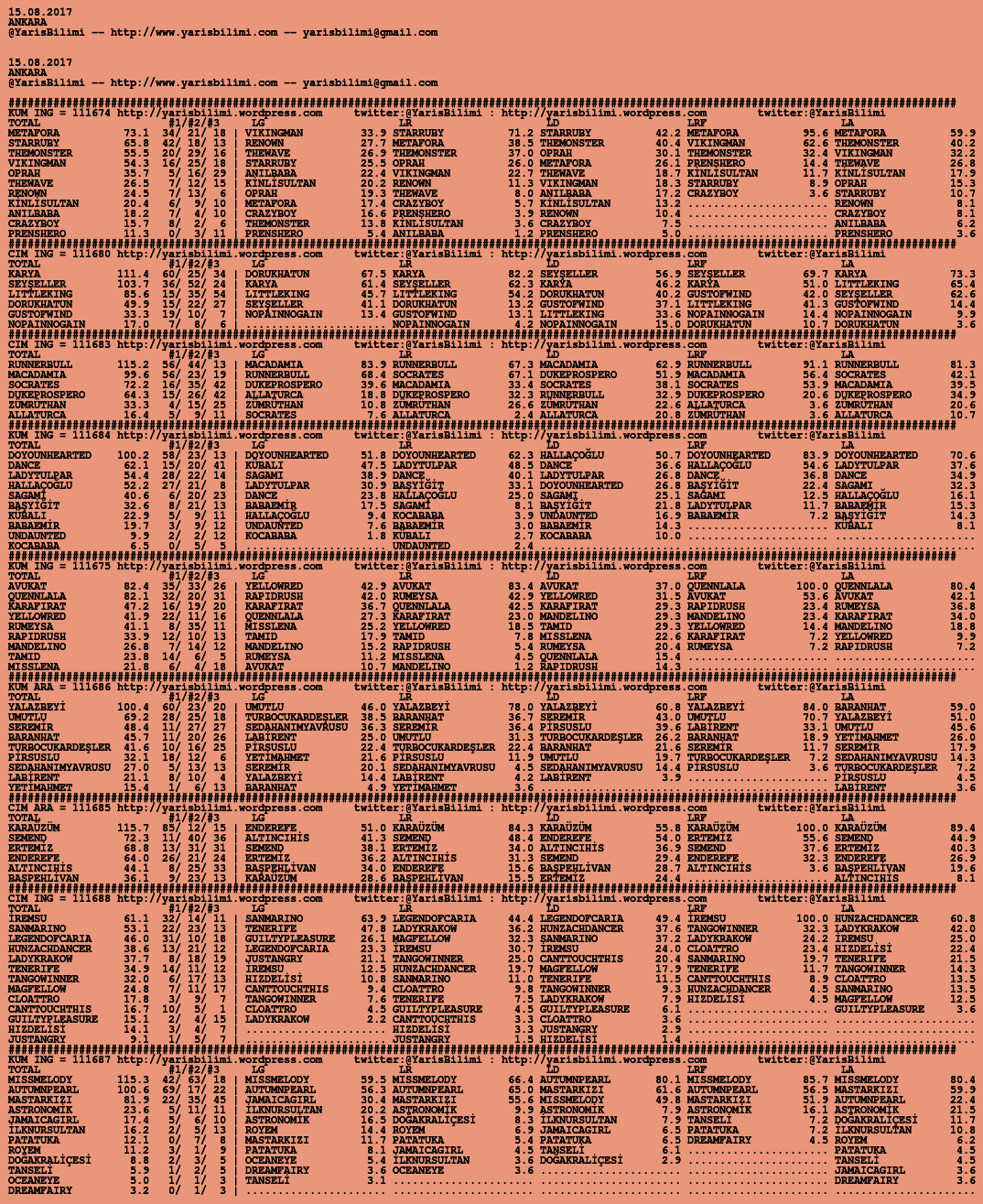 Görsel 15.08.2017.ANKARA tahminleri 15 Salı Ağu 2017 Etiketlerankara Yazan: yarisbilimi | Filed under ankara, yorum ≈ Yorum bırakın