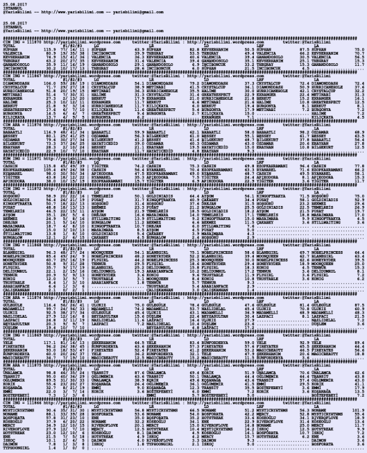 25.08.2017.ISTANBUL tahminleri