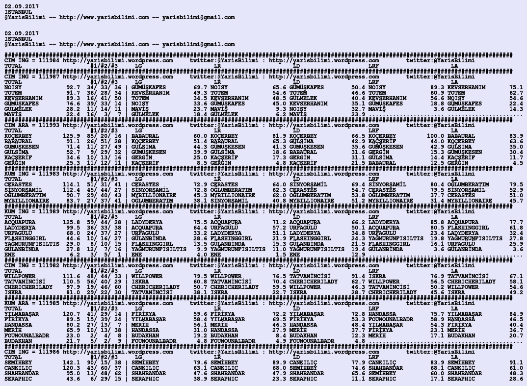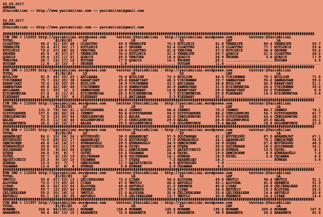 Görsel 02.09.2017.ANKARA tahminleri 01 Cuma Eyl 2017 Etiketlerankara Yazan: yarisbilimi | Filed under ankara, yorum ≈ 2 Yorum