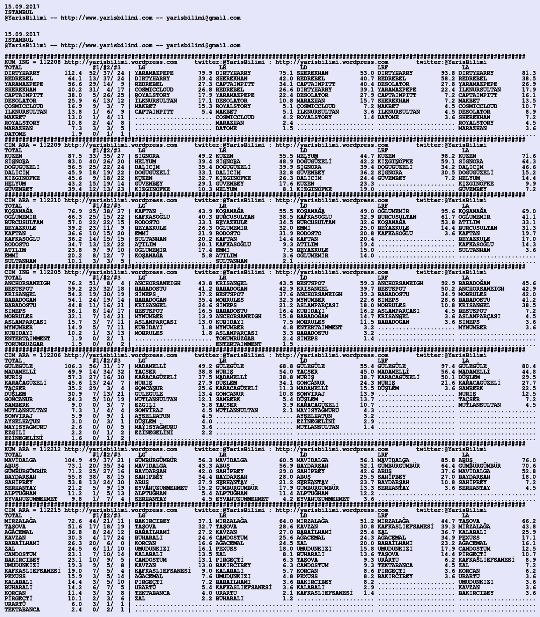 Görsel 15.09.2017.ISTANBUL tahminleri 15 Cuma Eyl 2017 Etiketleristanbul Yazan: yarisbilimi | Filed under istanbul, yorum ≈ 2 Yorum