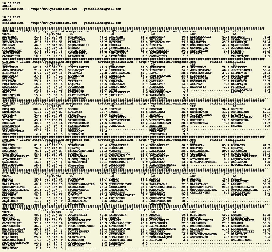 Görsel 18.09.2017.ADANA tahminleri 18 Pazartesi Eyl 2017 Etiketleradana Yazan: yarisbilimi | Filed under adana, yorum ≈ Yorum bırakın
