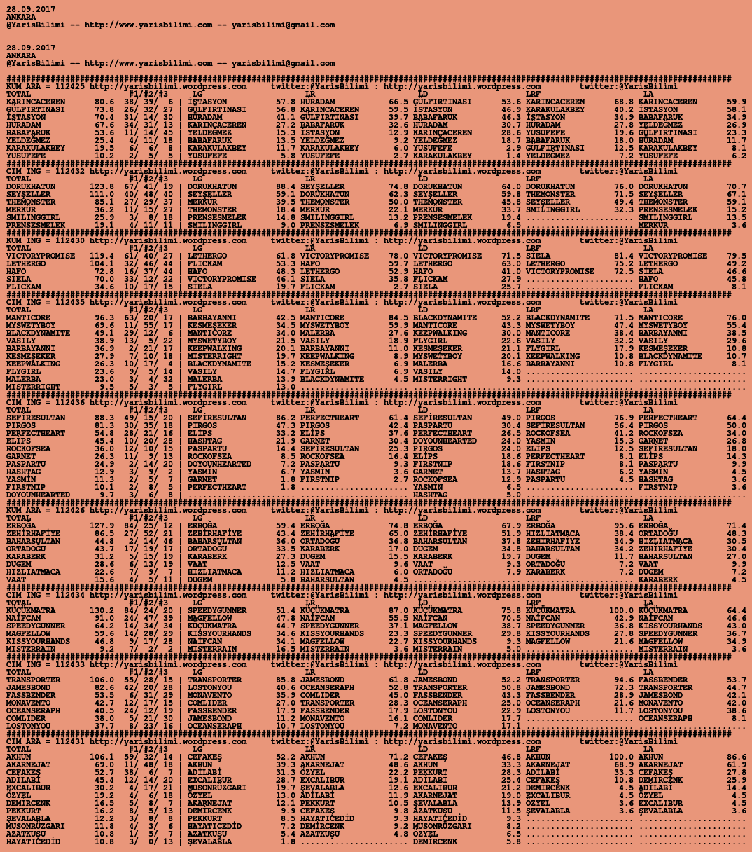 Görsel 28.09.2017.ANKARA tahminleri 27 Çarşamba Eyl 2017 Etiketlerankara Yazan: yarisbilimi | Filed under ankara, yorum ≈ Yorum bırakın