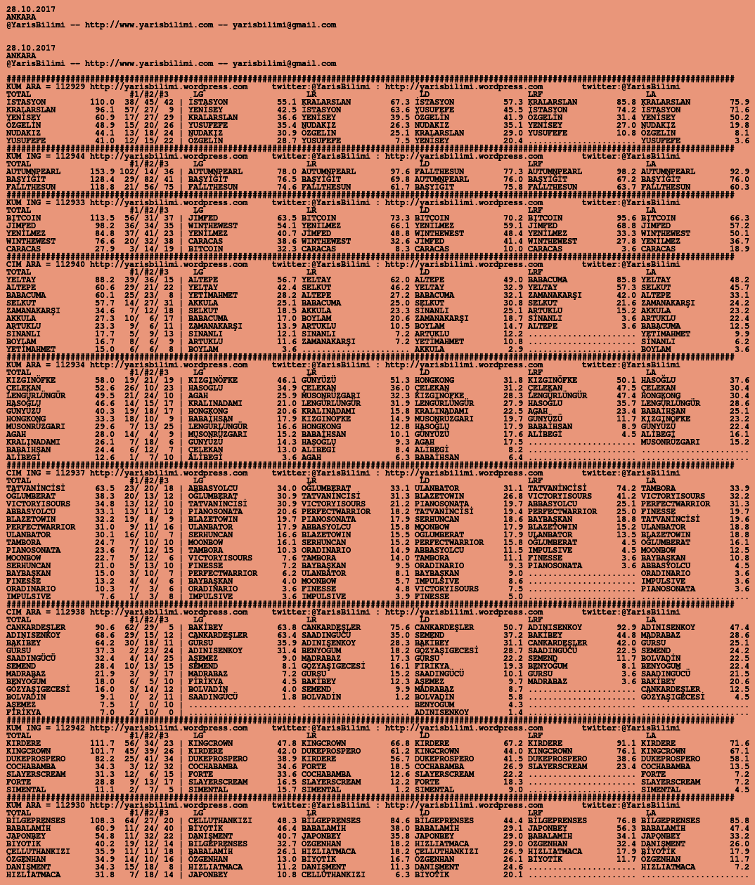 Görsel 28.10.2017.ANKARA tahminleri 27 Cuma Eki 2017 Etiketlerankara Yazan: yarisbilimi | Filed under ankara, yorum ≈ Yorum bırakın